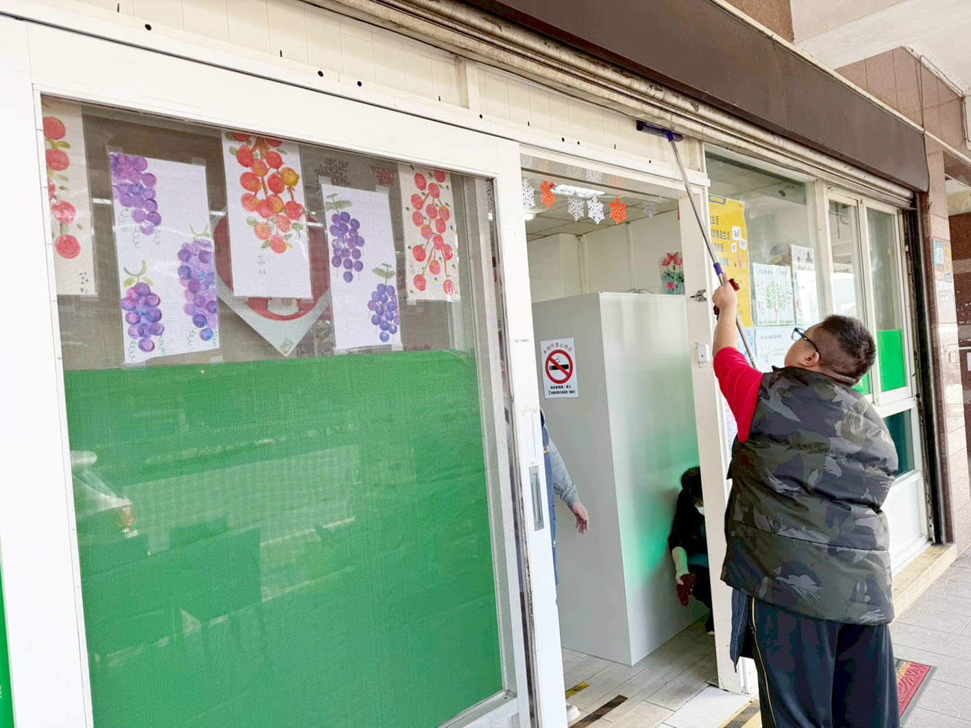 當清潔工作告一段落,灰塵被掃去心情也變得明亮,學員們收穫滿滿的成就感,大家齊心協力貼上象徵吉祥喜氣的春聯,佈置充滿年味的空間。紅色的春聯與整潔的環境相互映襯,讓工坊洋溢著溫暖與希望的氛圍,讓大家帶著嶄新的心情與希望迎向新的一年。