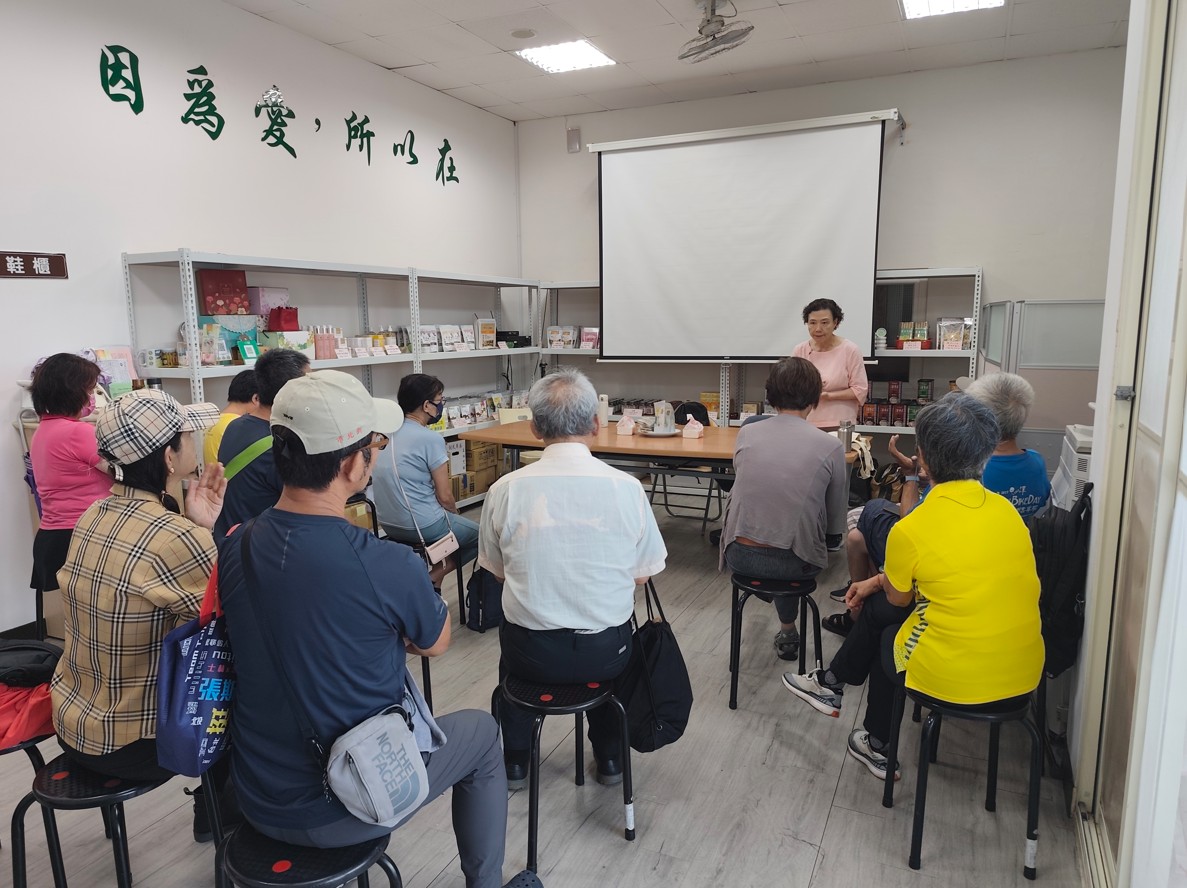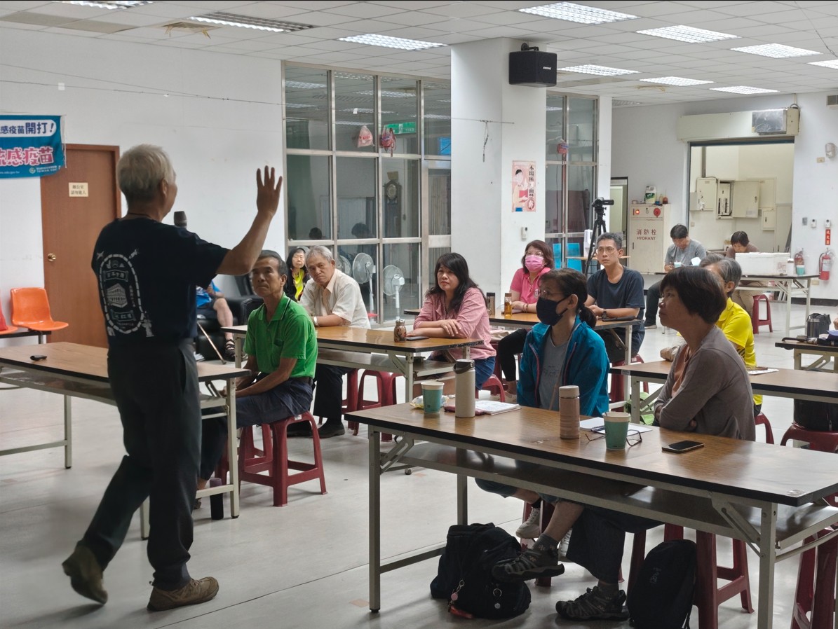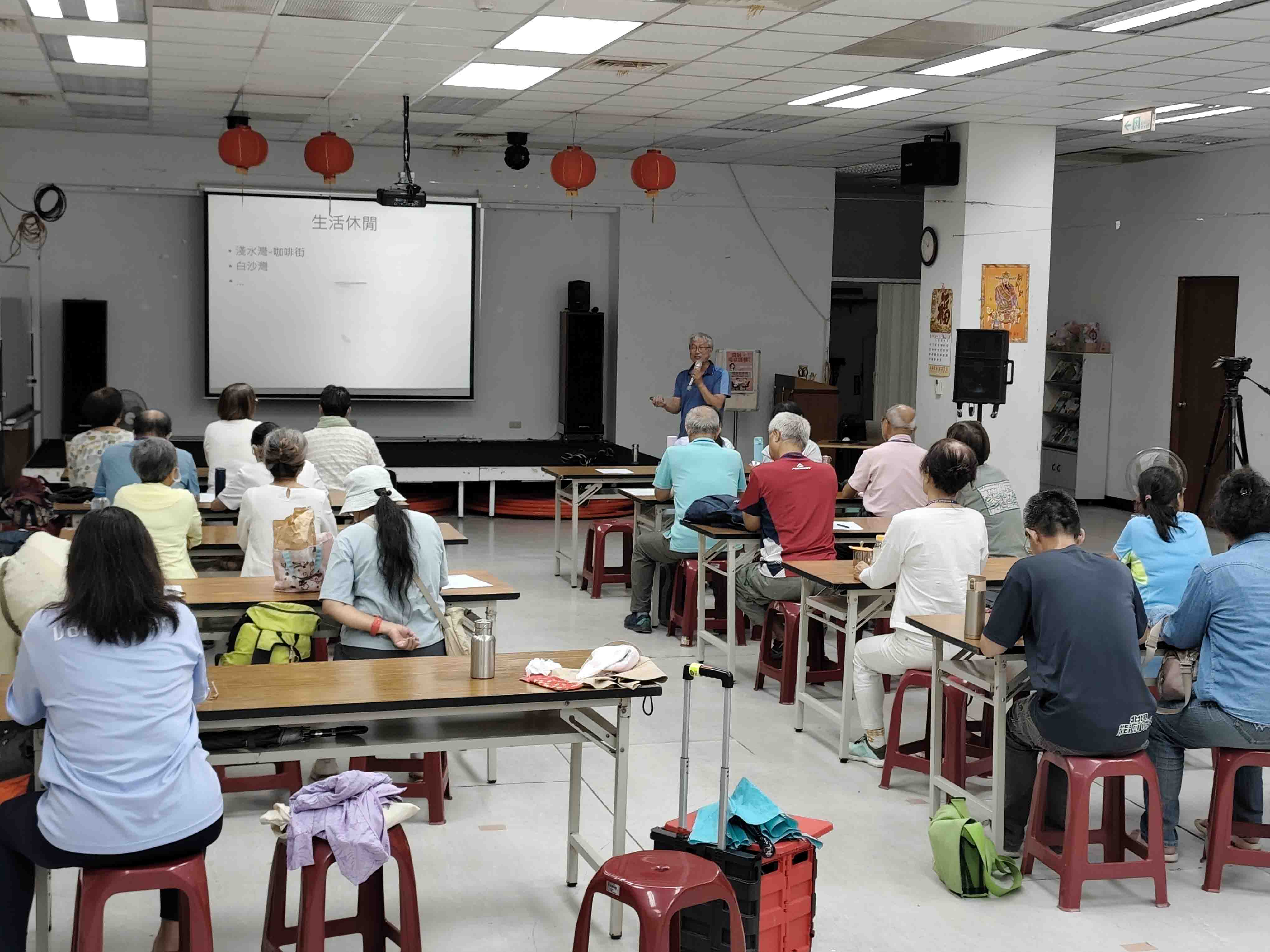 講解三芝產業與生活植物,經濟作物包括茶葉、藍靛、薪材(相思樹)、番薯、香茹、箭竹等及生活用農具、藥材,老師都詳細說明, 同時介紹三芝史觀從1735年至1945年的歷史流程,在信仰方面有尪公、大道公,當地民俗所舉辦的活動,學員真的收獲滿滿。