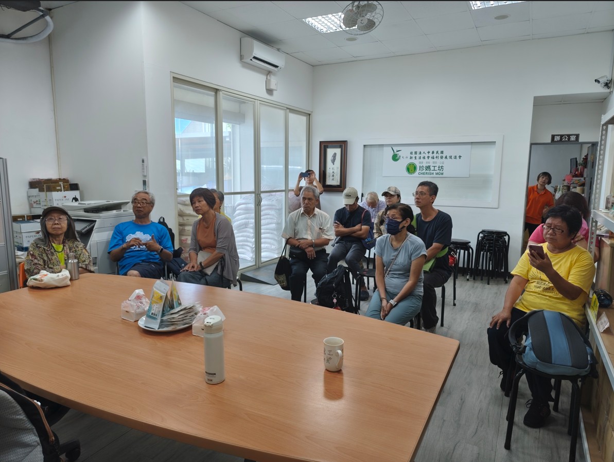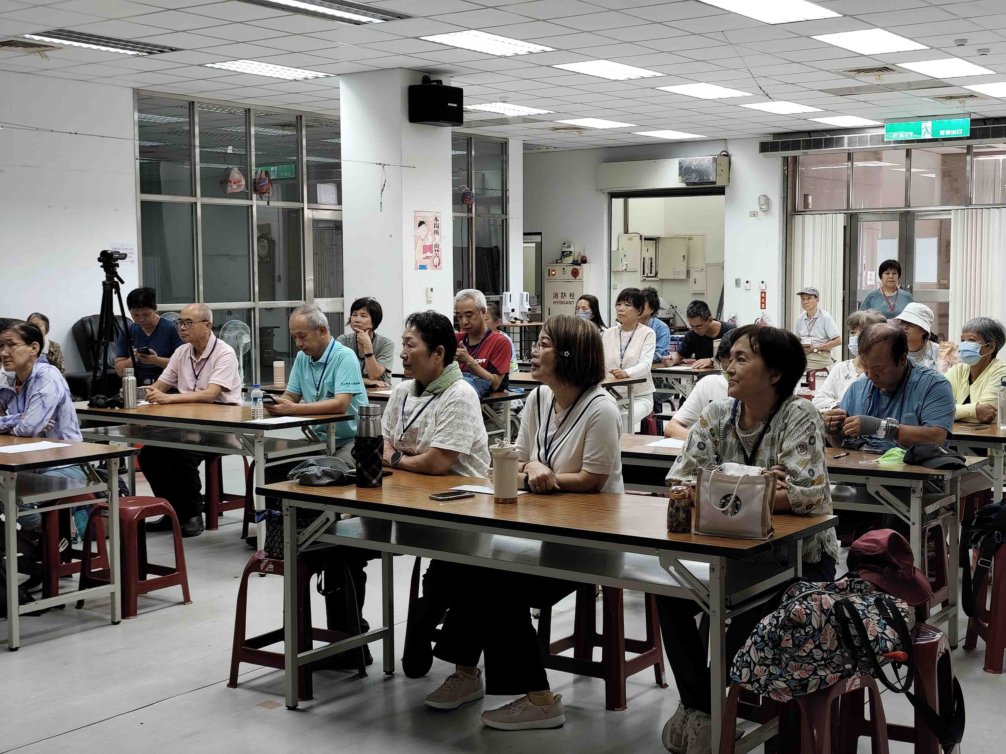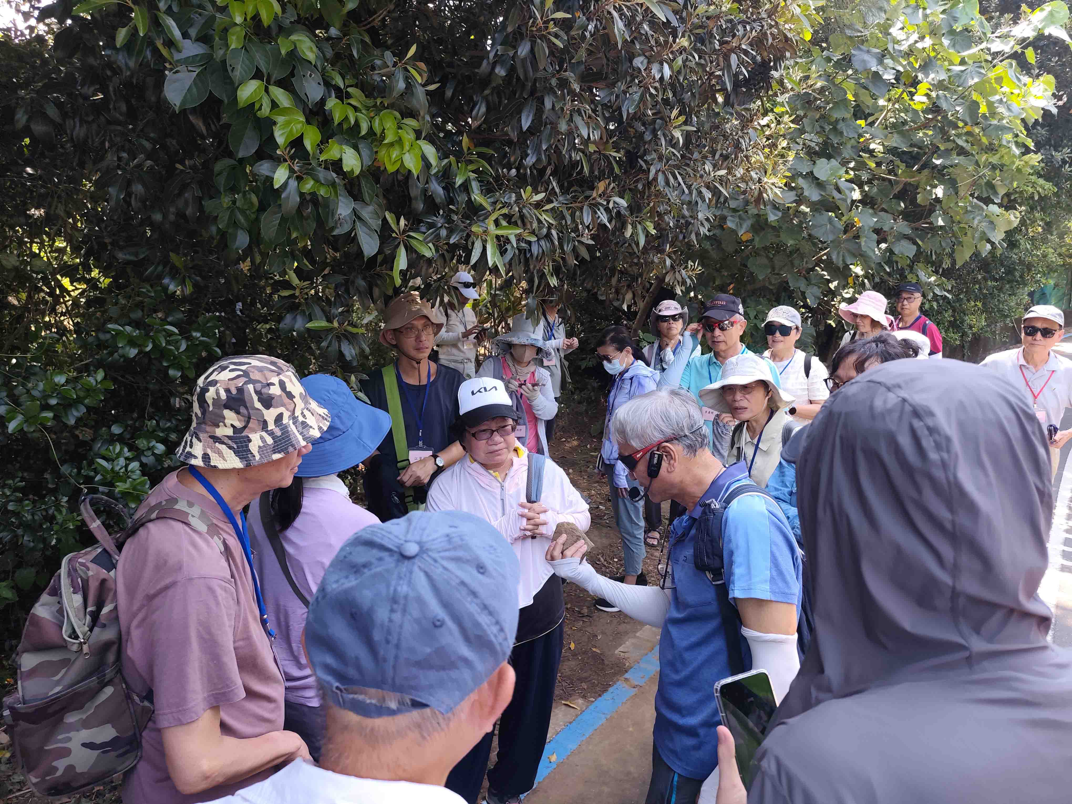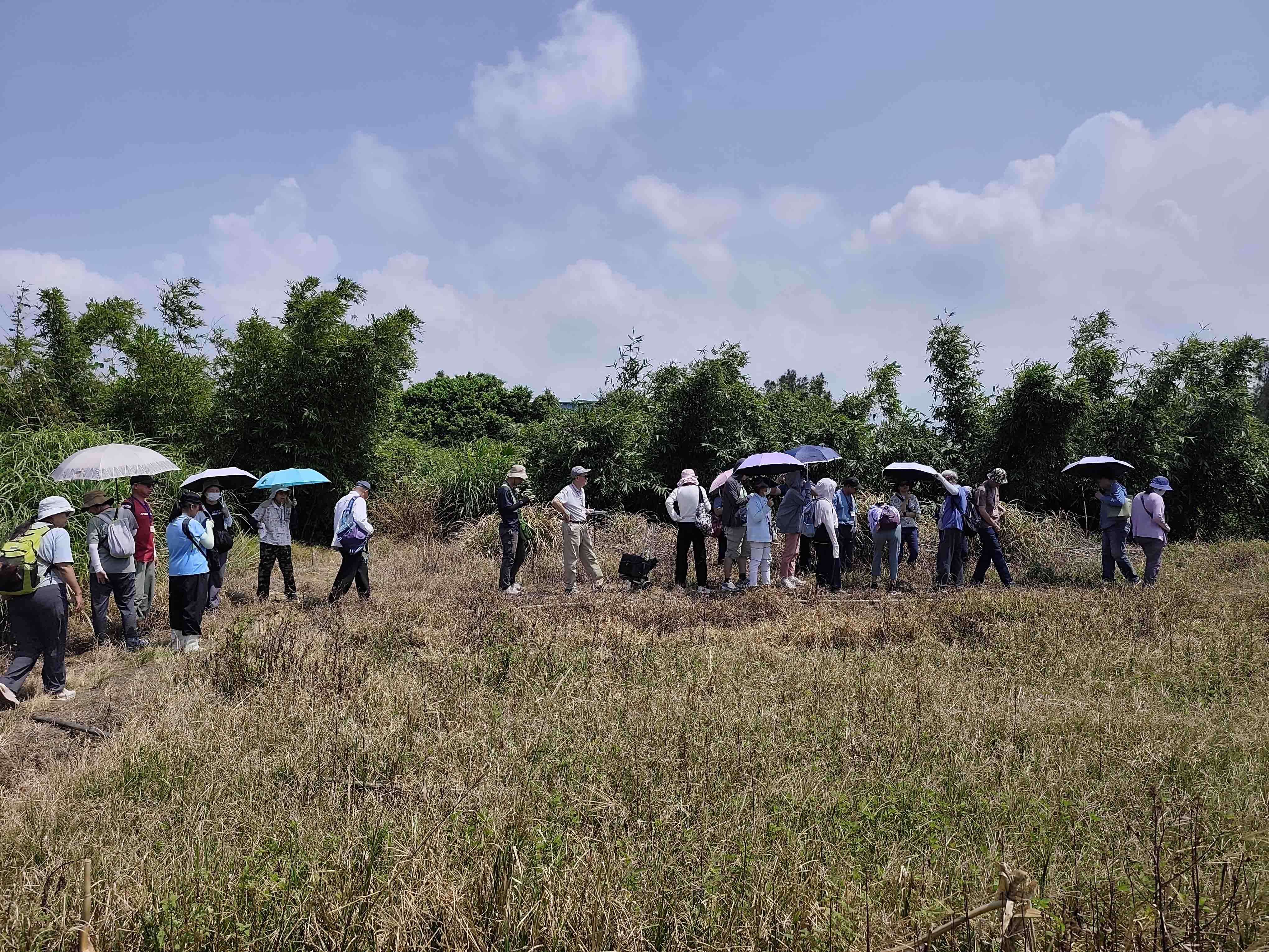 沿著八連溪踏訪農村生態之美,活動一開始由老師分享福德正神的趣聞趣事,隨後進入植物導覽,認識各式各樣的花卉與農作物,包括具特色的姑婆芋、嬌豔的牽牛花、常見的筊白筍、粉撲花及金針花等,深入了解它們的生長特性。 接著,老師講解螢火蟲雌雄外觀與習性的不同,並介紹古代稻田中常用的各種農具,讓大家對傳統農耕生活有更深刻的認識。 爾後來到老師親自施作的農園參觀,園中的大象石獅子,與種植著的帝王芭樂及空心菜。最後,老師開放學員親自採摘空心菜,滿載而歸,為本次生態農村之旅畫下圓滿句點。