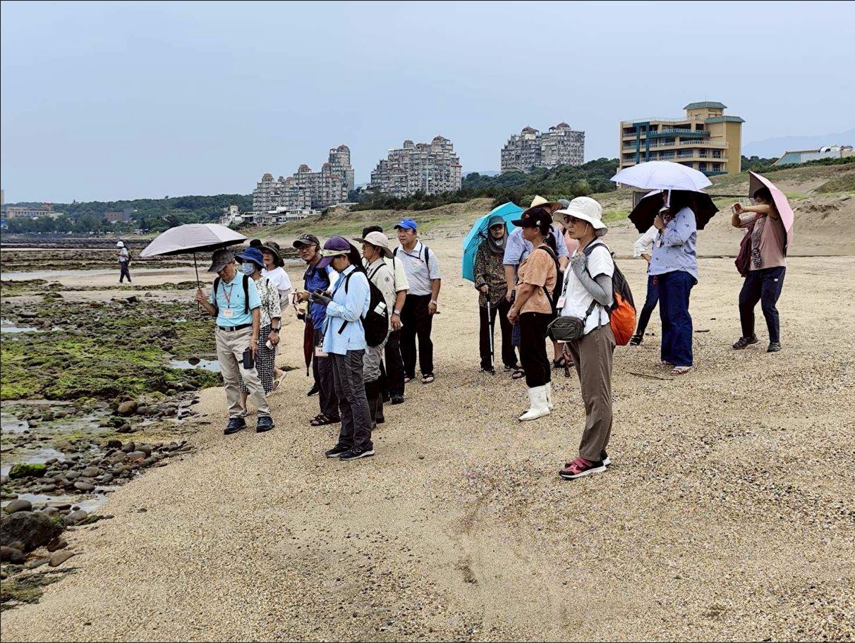 溫習北海岸濱海地理環境-地質景觀有火山地形、火成岩、沉積岩,在人文生活信仰是恭奉媽祖為主,並講解洋流走向潮汐與離岸流、四季風向,同時說明番社后遺址,原為平埔族聚居之地,又位於平埔族家屋之後方故稱「番社后」,以及小雞籠社舊址300-400年前番社社址。老師最後介紹台灣石滬又稱魚滬的分佈,早期文獻出現於清代,石滬的用途游泳,撿螺貝類、抓螃蟹、敲蚵仔等,並講解石滬建造天然條件,三芝石滬建造的劣勢,黑齒牡蠣的生長,藻礁及石灰窯的製造過程,學員都收獲滿滿。