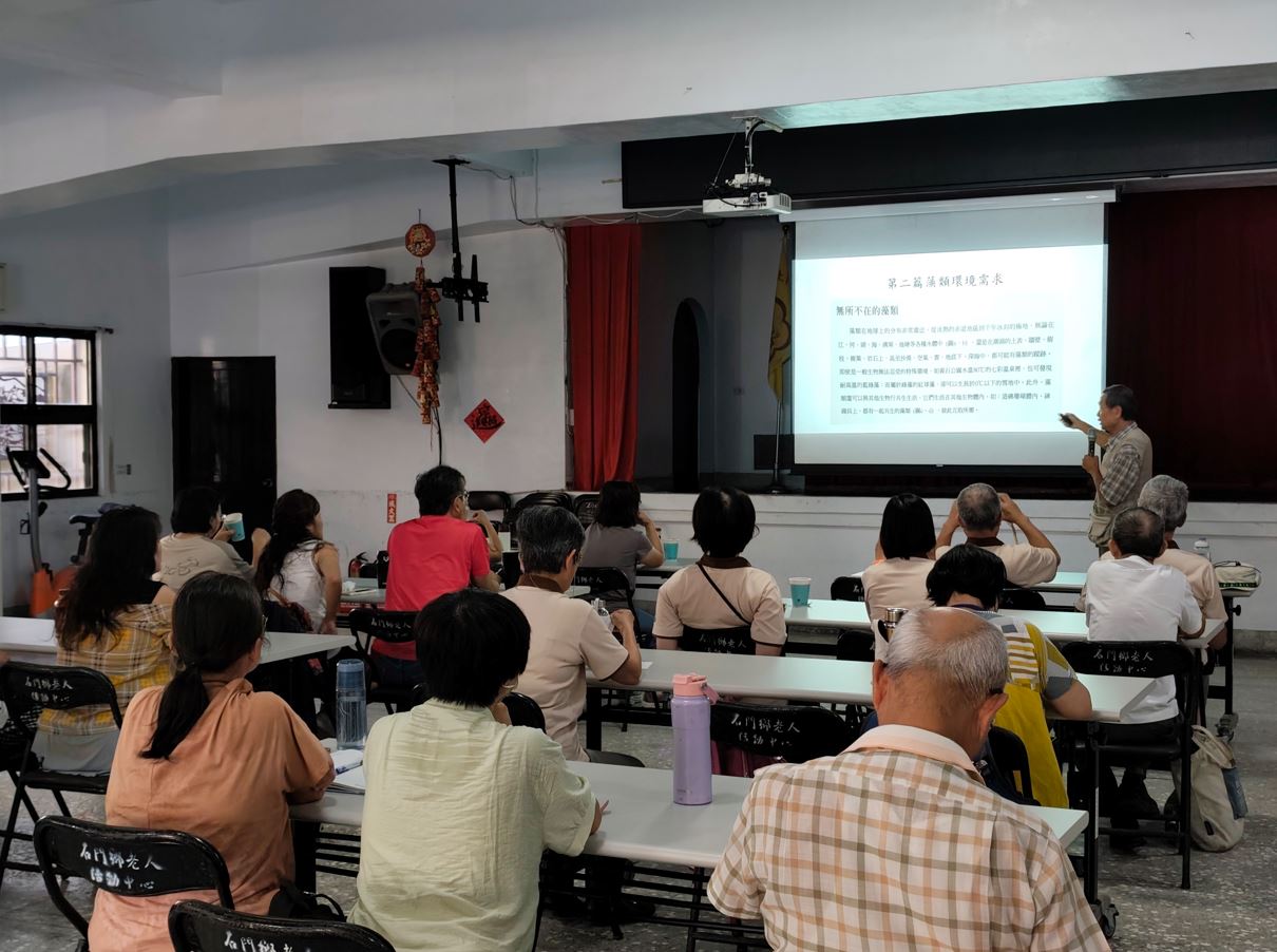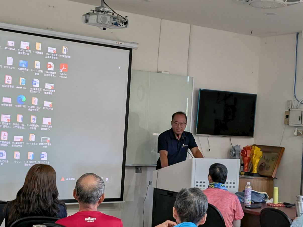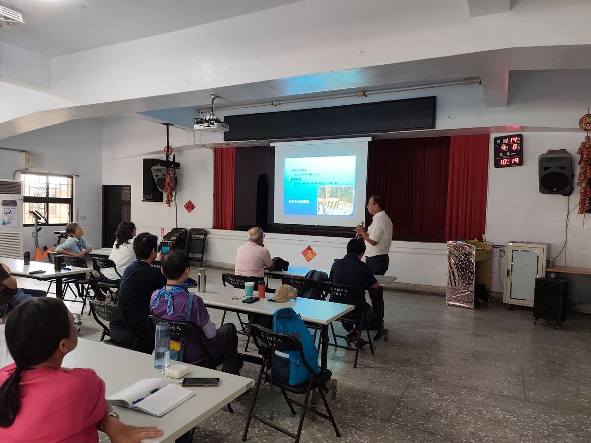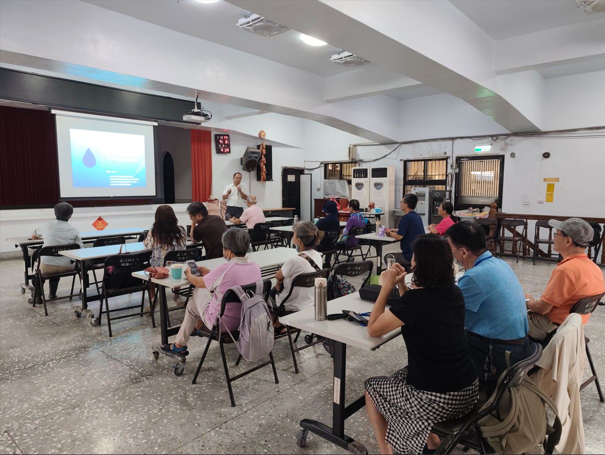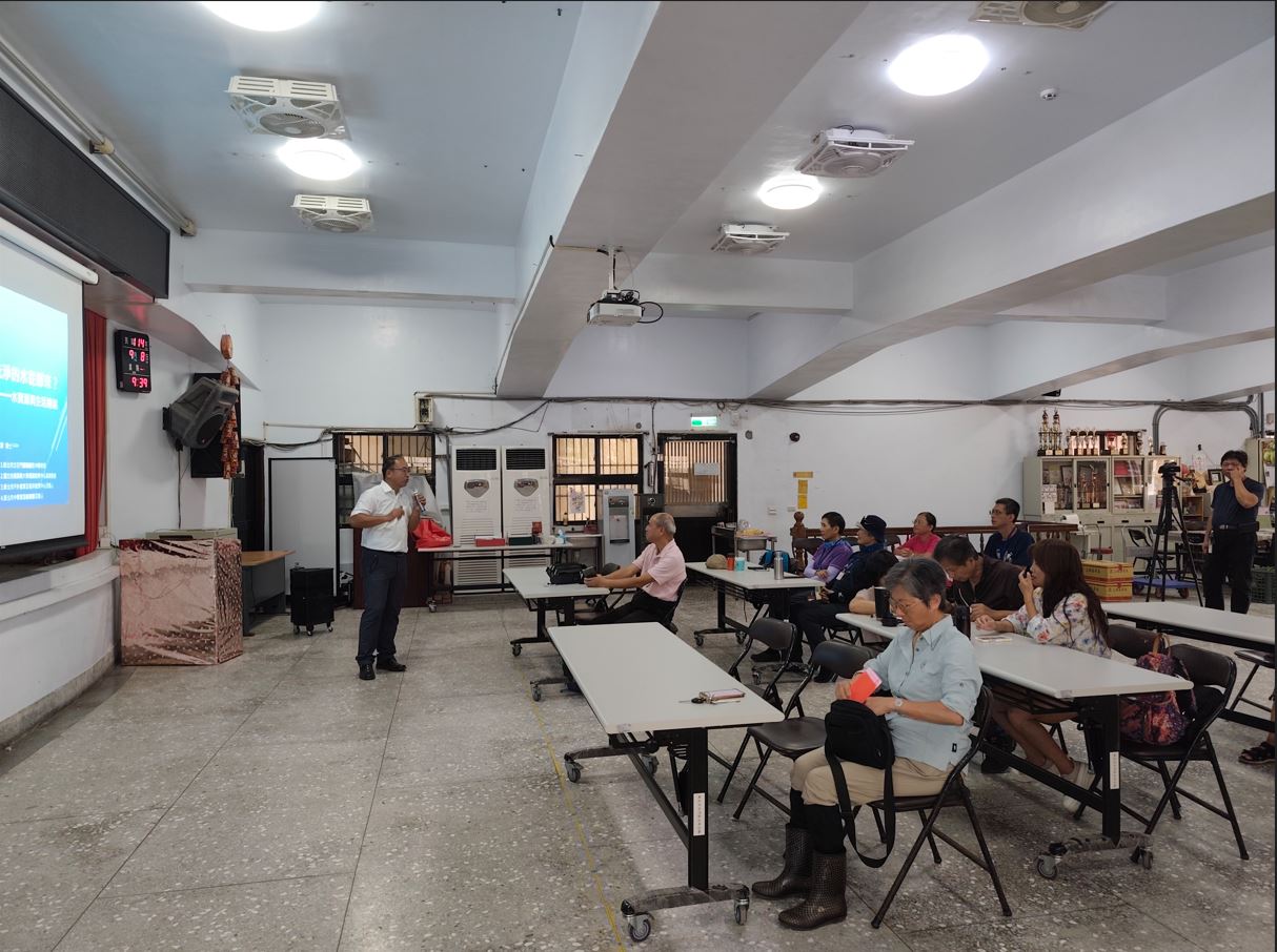 乾淨水資源與社區行動:課程中,講師以石門、老梅為例指出,「乾淨的水」不僅是清澈或經煮沸的水,更須符合飲用水標準,涵蓋物理、化學與微生物的安全指標。他強調,台灣雖然降雨量多,但因分布不均、地形限制與極端氣候影響,經常面臨乾旱、濁度升高及管線脆弱等挑戰。