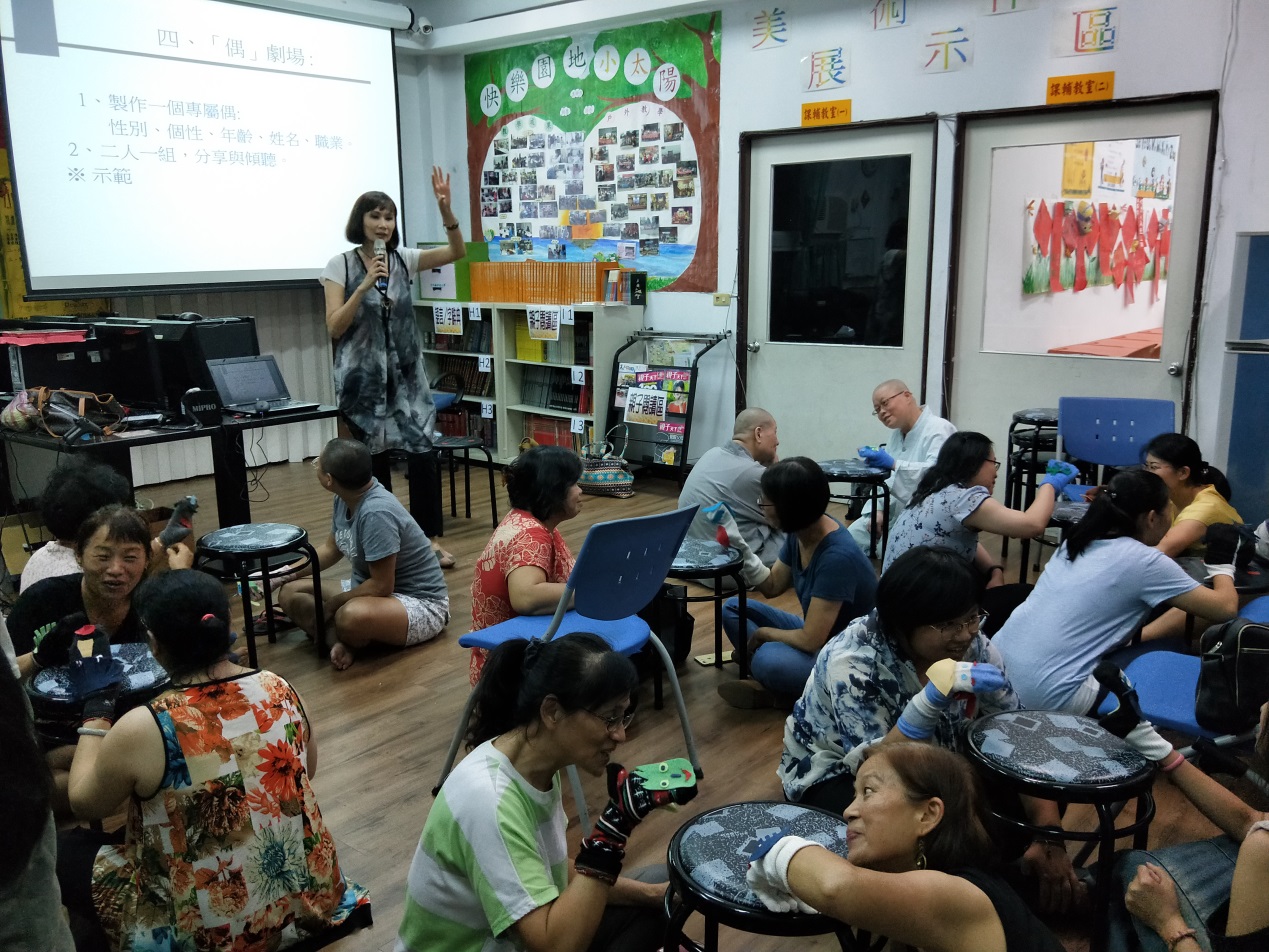 107年08月07日(星期二)下午6點至8點,陳培慧老師帶領進行單元主題-「戲劇治療-表達與傾聽」。「戲劇治療」是透過肢體語言、聲音表情、戲劇情節等等戲劇手法達到情感紓發、情緒轉嫁、進而同理與自我成長的一種心靈輔導方式。