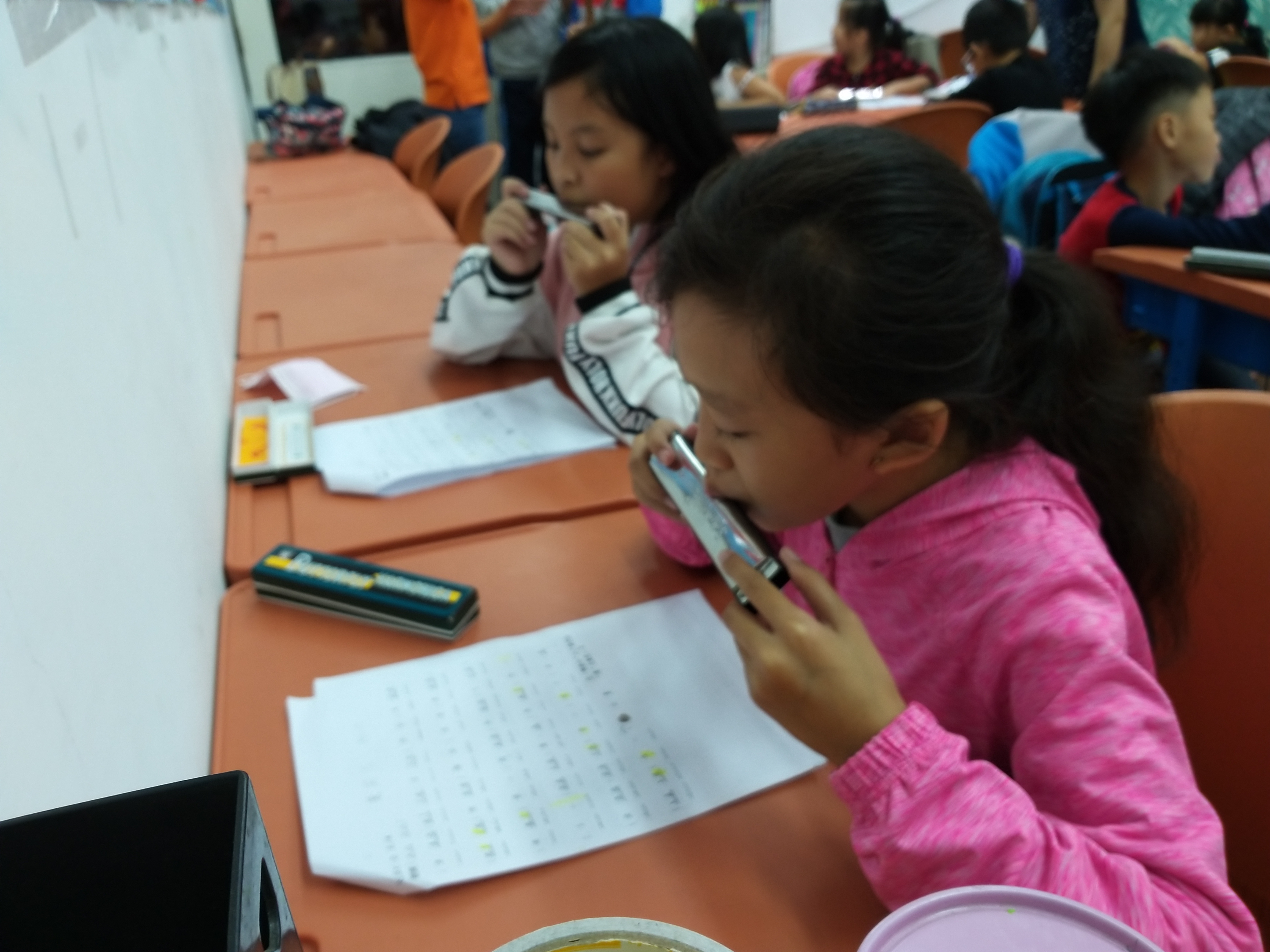 107年10月31日(星期三)下午2點至4點,本會口琴老師張昌邦老師,指導學童口琴課程,張昌邦老師說,口琴是個很奇特的樂器,因為它不是弦樂器也不屬管樂器,同樣既不屬弦樂也不屬管樂的鋼琴,可以在國際樂團中出現,口琴卻不行!所以很多人都把口琴當成玩具一般,原因也在於拿在手上用嘴巴一吹就能吹出聲響,比起薩克斯風、長笛之類樂器,必須做吹嘴練習才能吹出聲響,容易了許多。其實口琴真正的奧妙,不僅是易學輕便,一首樂曲如果適時地運用振音的效果,那麼聽起來一定相當優美悅耳。事實上,我們可以從許多樂器上看到他們的振音,雖然方法不盡然相同,但振音所給予我們的感動卻是一致的。