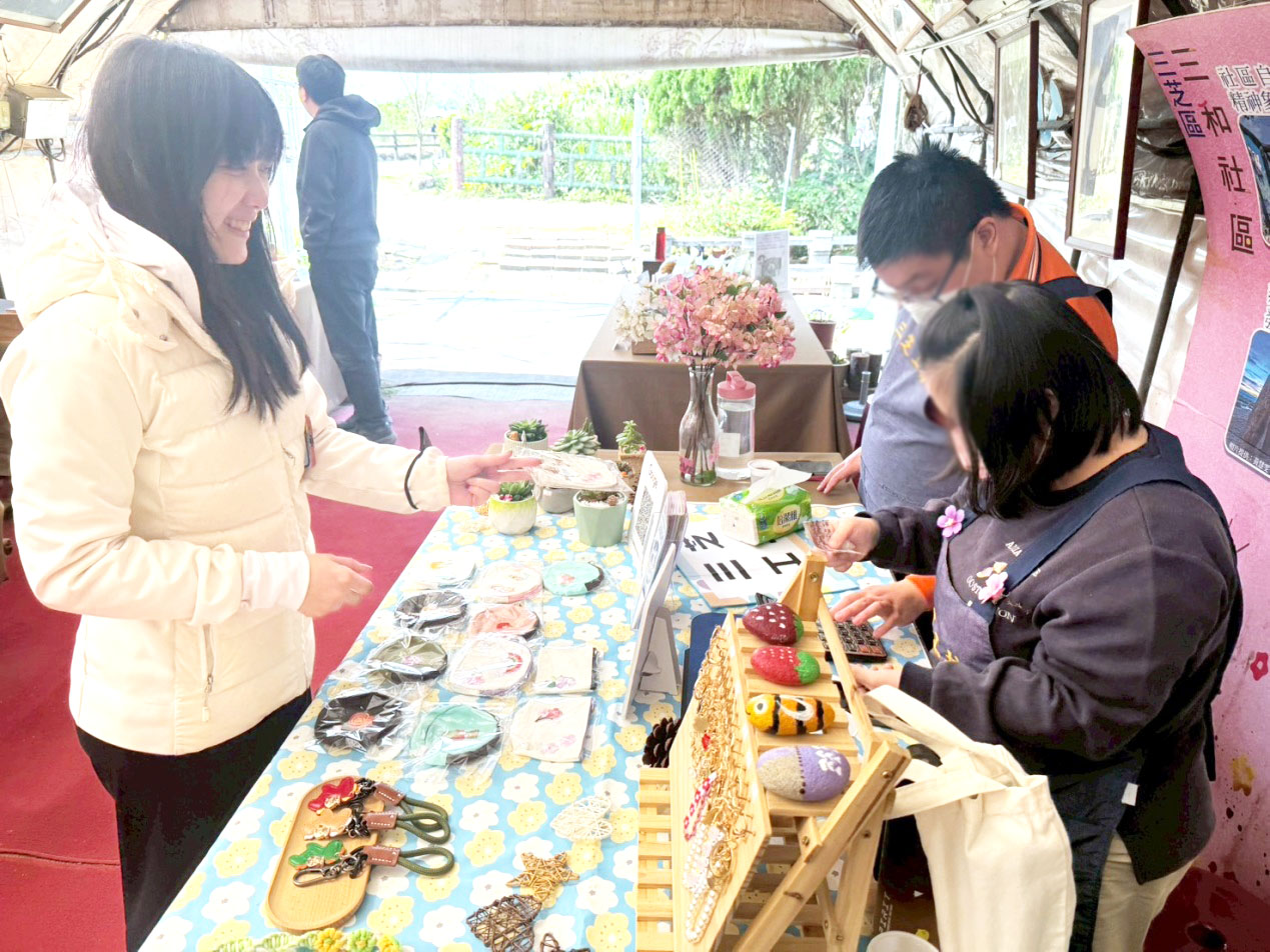 當民眾停下腳步欣賞商品與學員互動,甚至購買商品時,學員們臉上都露出開心的笑容,對學員而言,能夠親自向客人介紹商品並參與擺攤,是難得的學習經驗,也讓他們感受到自己的努力被看見與肯定。