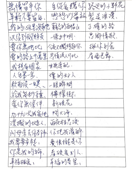 曾學員每周都會寫一張歌單紙條給馨窩!不只老歌,也有新歌喔!!