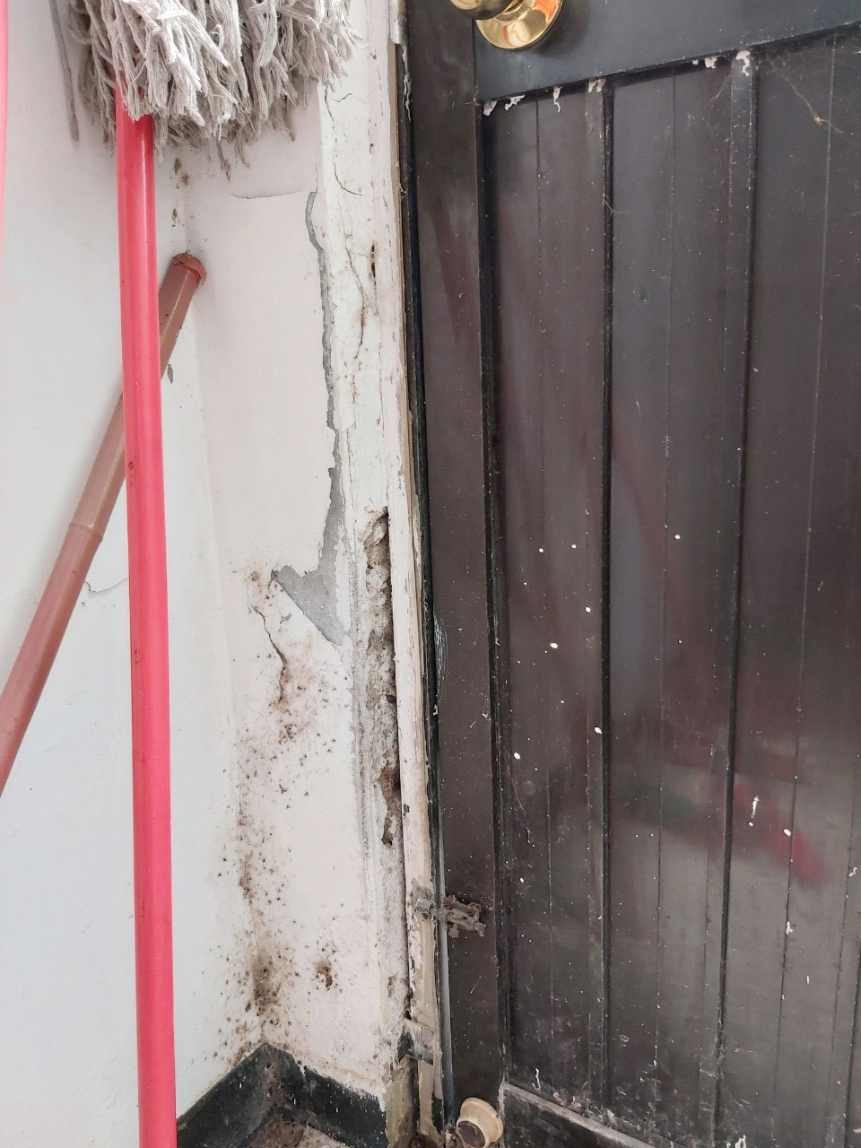 門口上方水泥龜裂,有整塊掉落的危險。小潘哥補門外上方水泥,感謝小潘哥!