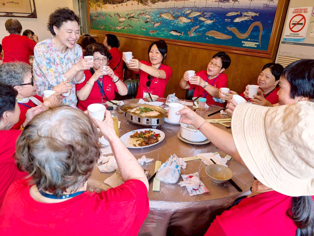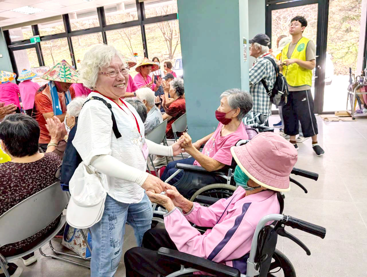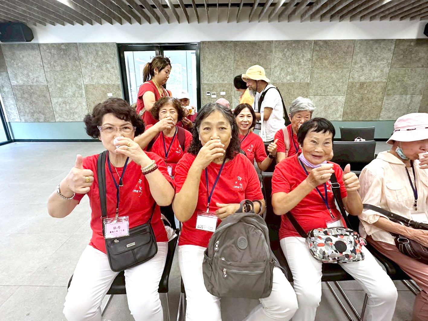 此次壯遊參學據點為伊甸基金會的坪林長者關懷據點,該據點空間廣闊、窗明几淨,近30名伊甸服務的長者,各個和藹可親、平易近人,讓我方長者在聯誼中,更能落落大方、歡喜融合,長者在開心互動中,敞開心扉、動起全身,全場洋溢青春活力!
