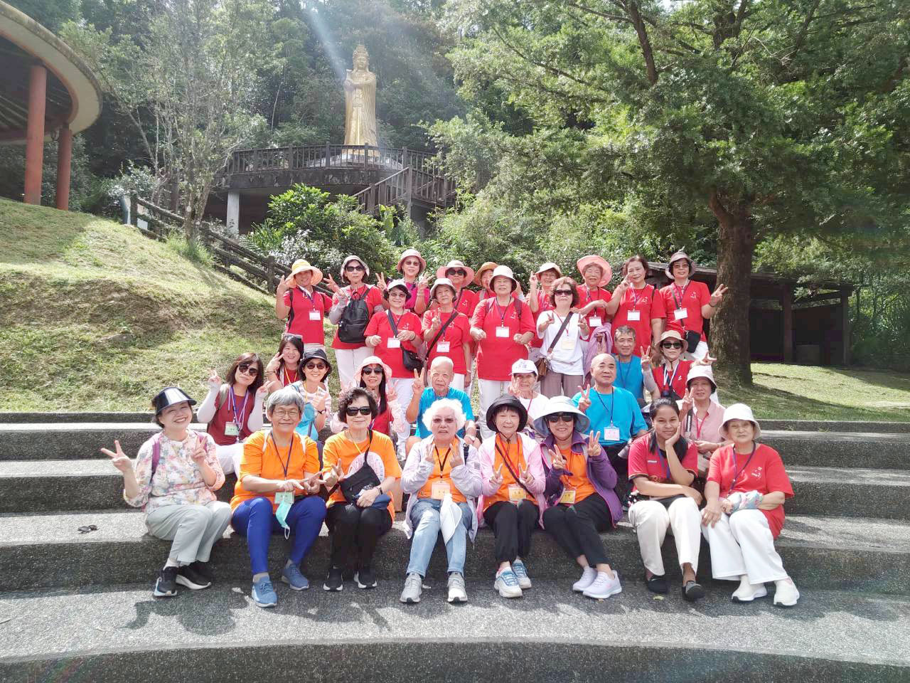 大家最後至石雕公園健行,園林裡佈滿各式茶種育成的茶樹,株株健碩油綠,與多樣的石雕和諧相映,長者身心舒放,揚起歡笑聲與相互提醒注意安全的叮嚀聲,久久不絕!長者經由坪林參學獲得了中秋佳節將臨的快樂與成長,而我們也因真心關懷與付出,和長者們共創了永難忘懷的流金歲月!