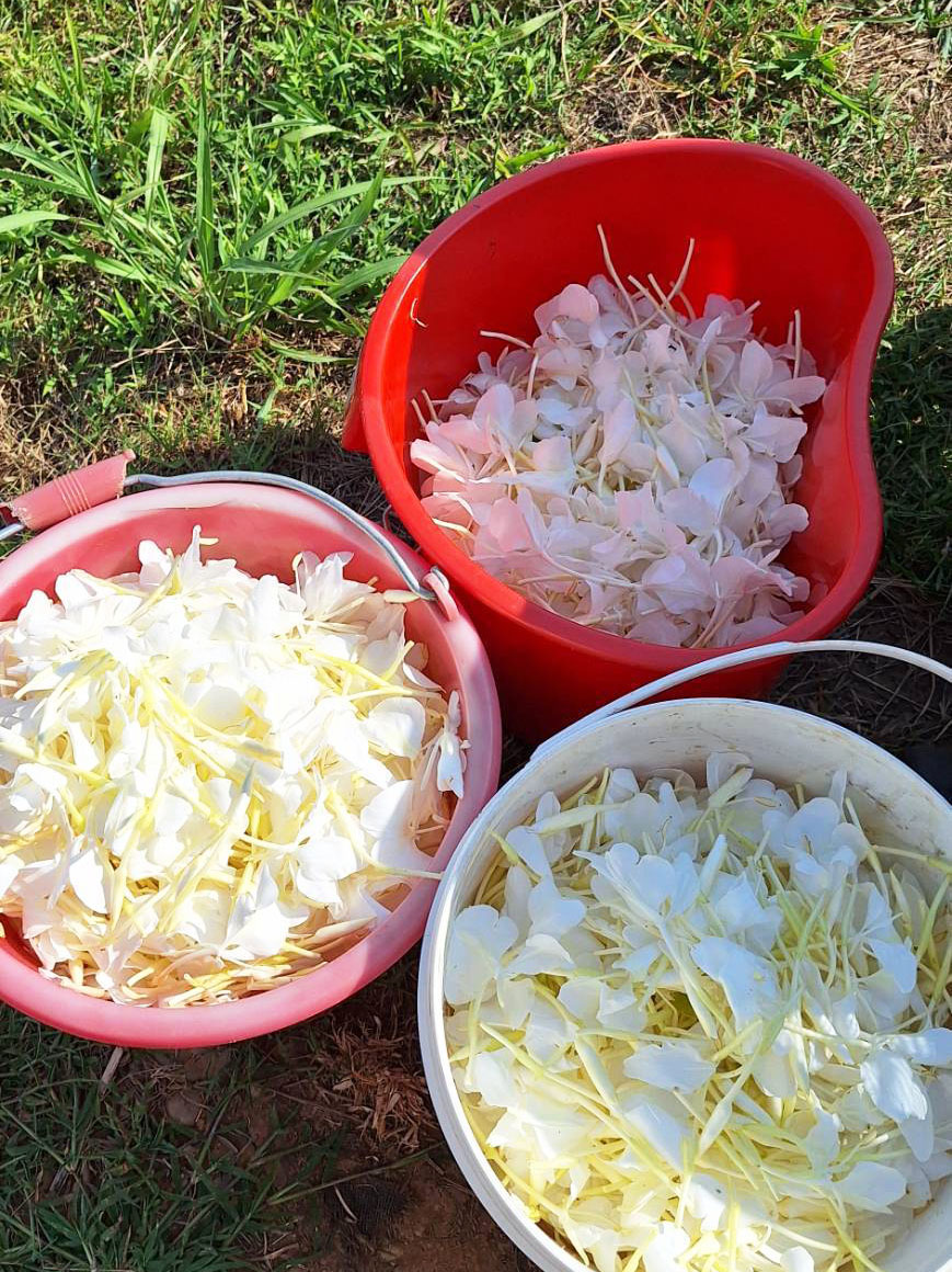 就在8/21星期四當天,三位義廚備齊所有食材蒞臨石門茂林社區教學,讓珍媽團隊與社區長者共學共享--月桃香積素水餃、冰心月桃綠豆糕、野薑花洛神石花、野薑花什錦菇盅、野薑花香素春捲、野薑花月桃米粿等6道在地美食。