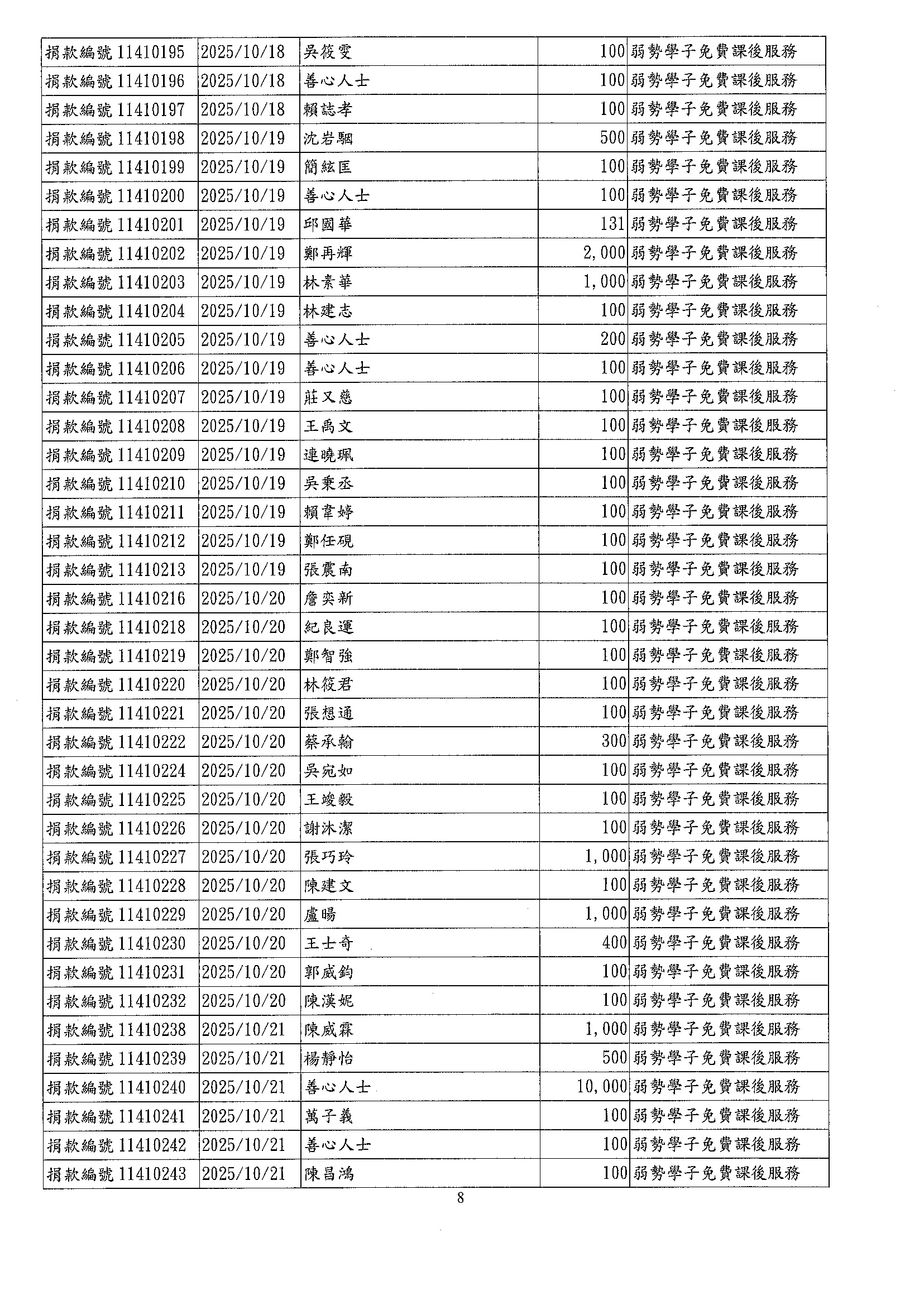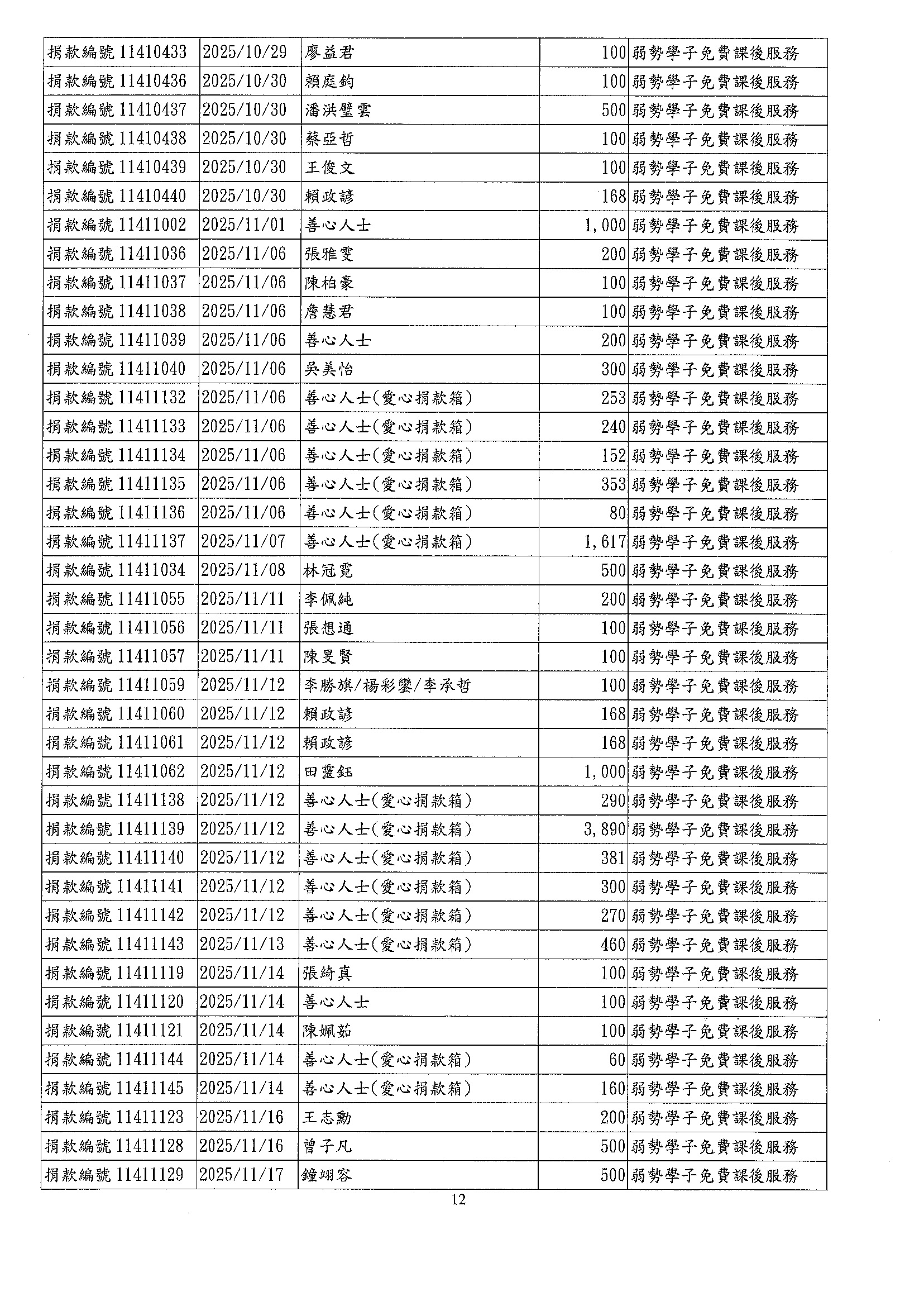 • 捐款專案公告