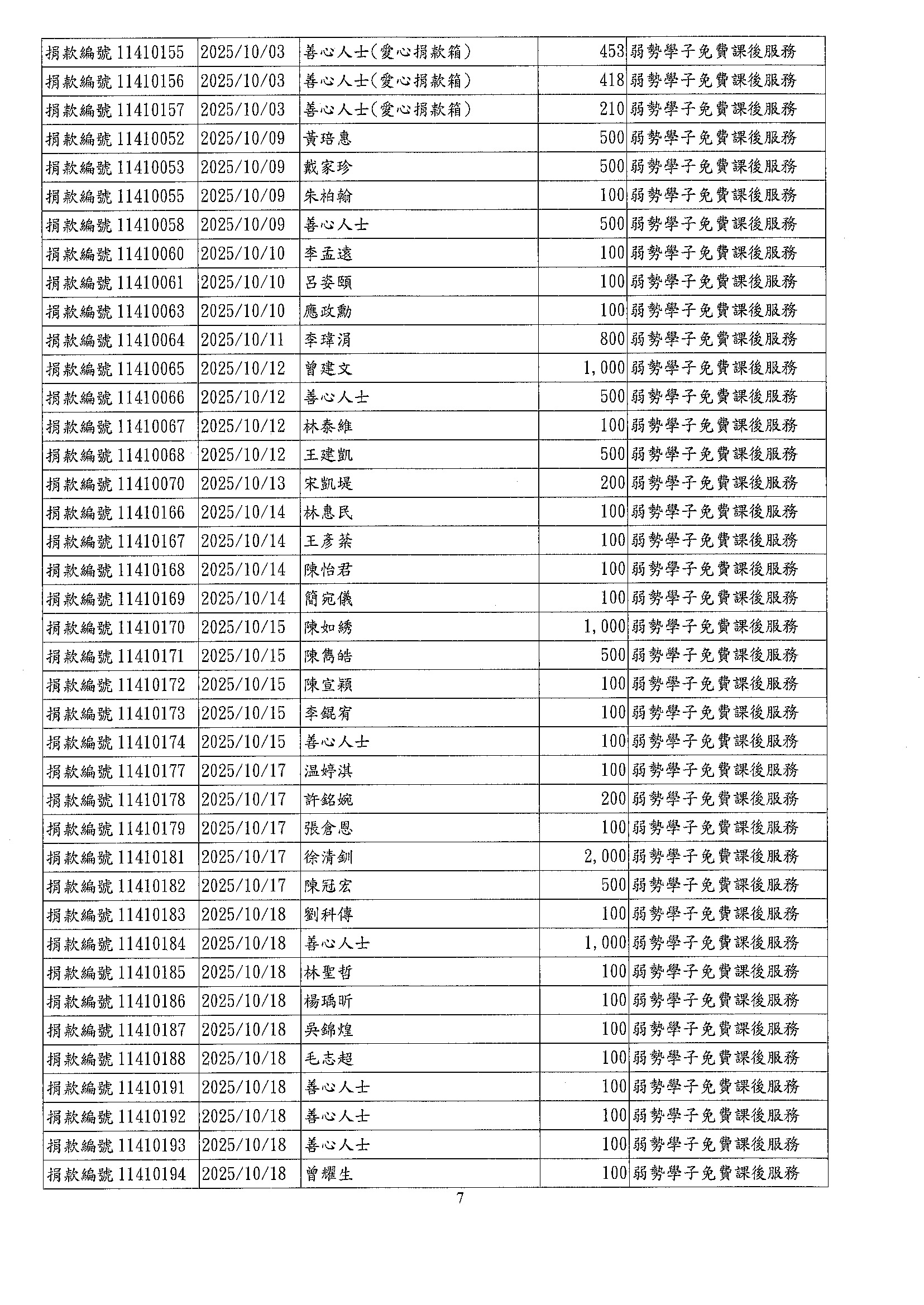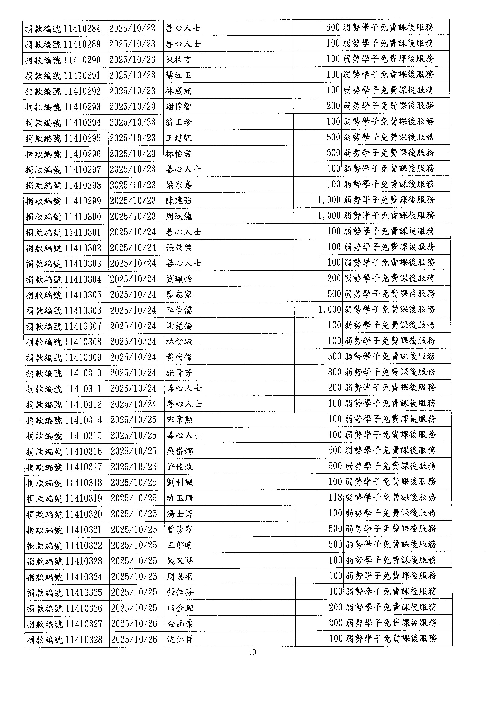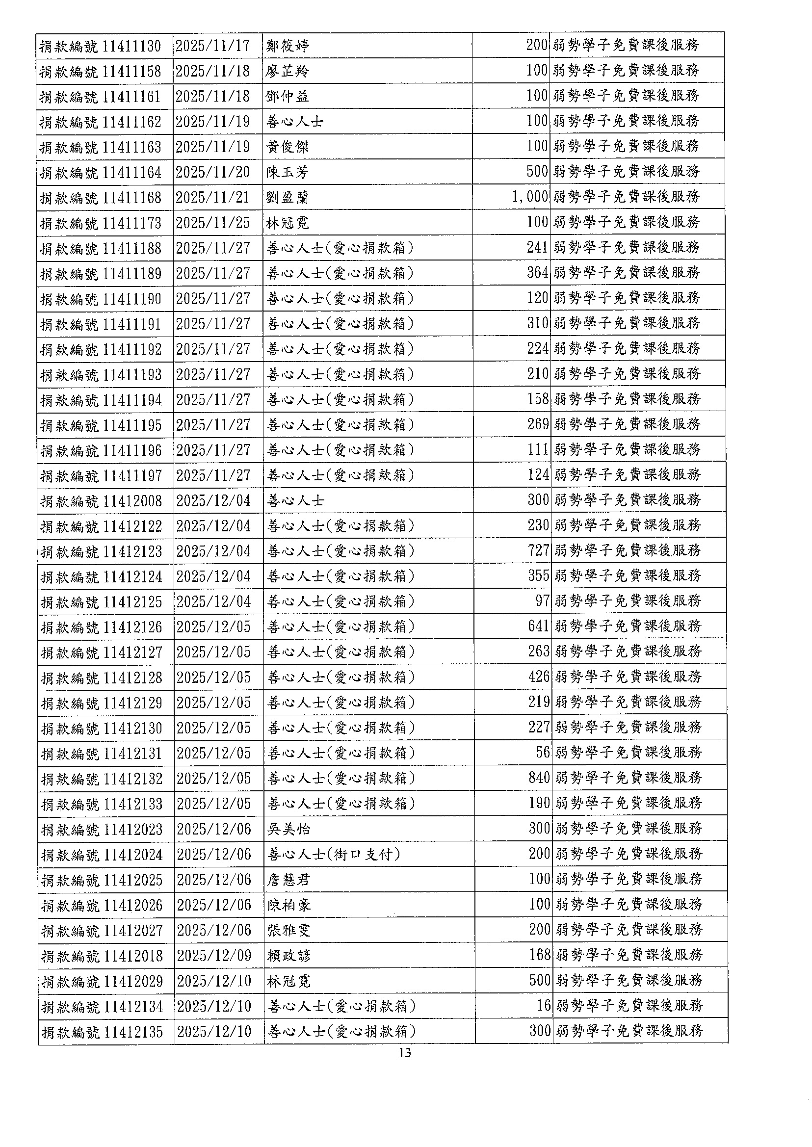 • 捐款芳名錄