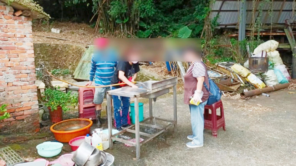 案主住處已數年沒水可用,蹲式馬桶早已不通,也沒有水可以洗澡,如廁時就到外面草叢隨處方便,久而久之對於自身的衛生也就完全不在意,因此家中的氣味及髒亂的環境可想而知,案主的家人對於案主的不良生活習性很是生氣,日子久了也就不願再幫忙整理。