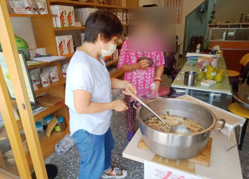 協會透過需求調查,為具有行動力,方便自取的案家奉上愛心粥,每週一至週五早上10:30~11:30在老梅服務據點【益棧】,提供熱騰騰的粥品及麵包、蔬菜、水果等食物,讓案家在每一天的開始,都充滿高元氣與好心情。