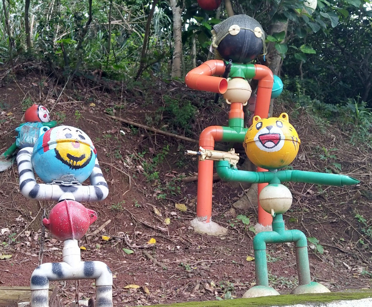 ☆雙心公園閃亮特殊的牽罟造景是石門的最新的地標景點,附近社區有許多創意浮球藝術品,是由當地居民撿拾海漂浮球製作而成,除了彩繪浮球之外,甚至做成機器人等有趣公仔非常天馬行空,歡迎您也來欣賞喔!